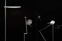 Unable to find a suitable lamp for their apartment, Rosmarie Baltensweiler and her husband Rico simply made one themselves in 1951. With its black-and-white shade, heavy metal base, slender chrome rods, and six axes of movement, they created a floor lamp that could be turned in all directions and adjusted to various contexts and uses: one day to flood the ceiling, another to read by.
